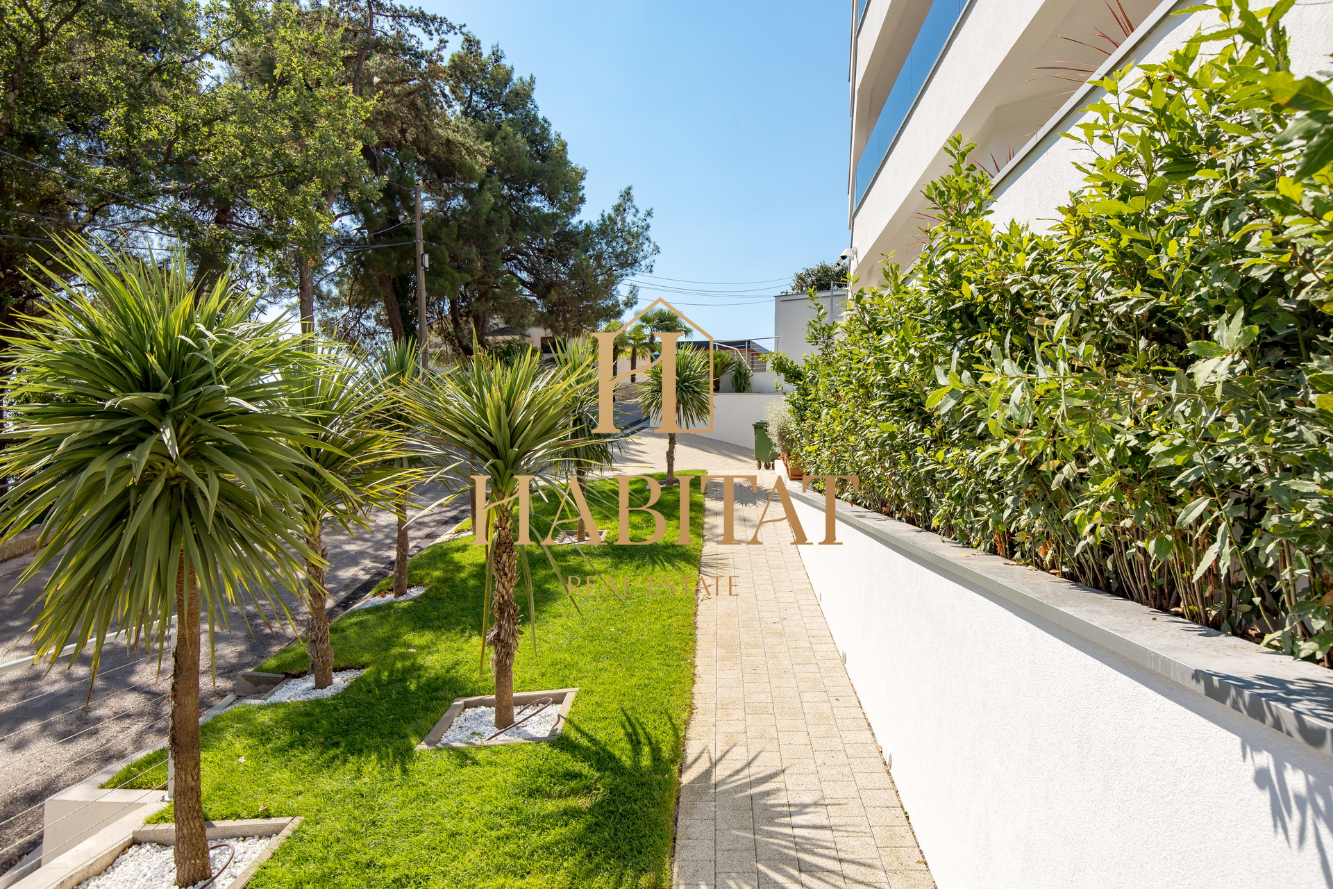 Elegantni prizemni stan s dvije terase i malim vrtom nudi intiman i ugodan životni prostor. Dvije spavaće sobe i dvije kupaonice idealne su za parove ili manje obitelji. Stan odlikuje kvalitetna izvedba, odlična orijentacija i dobro organiziran tlocrt, uz pripadajuća parkirna mjesta i spremište.