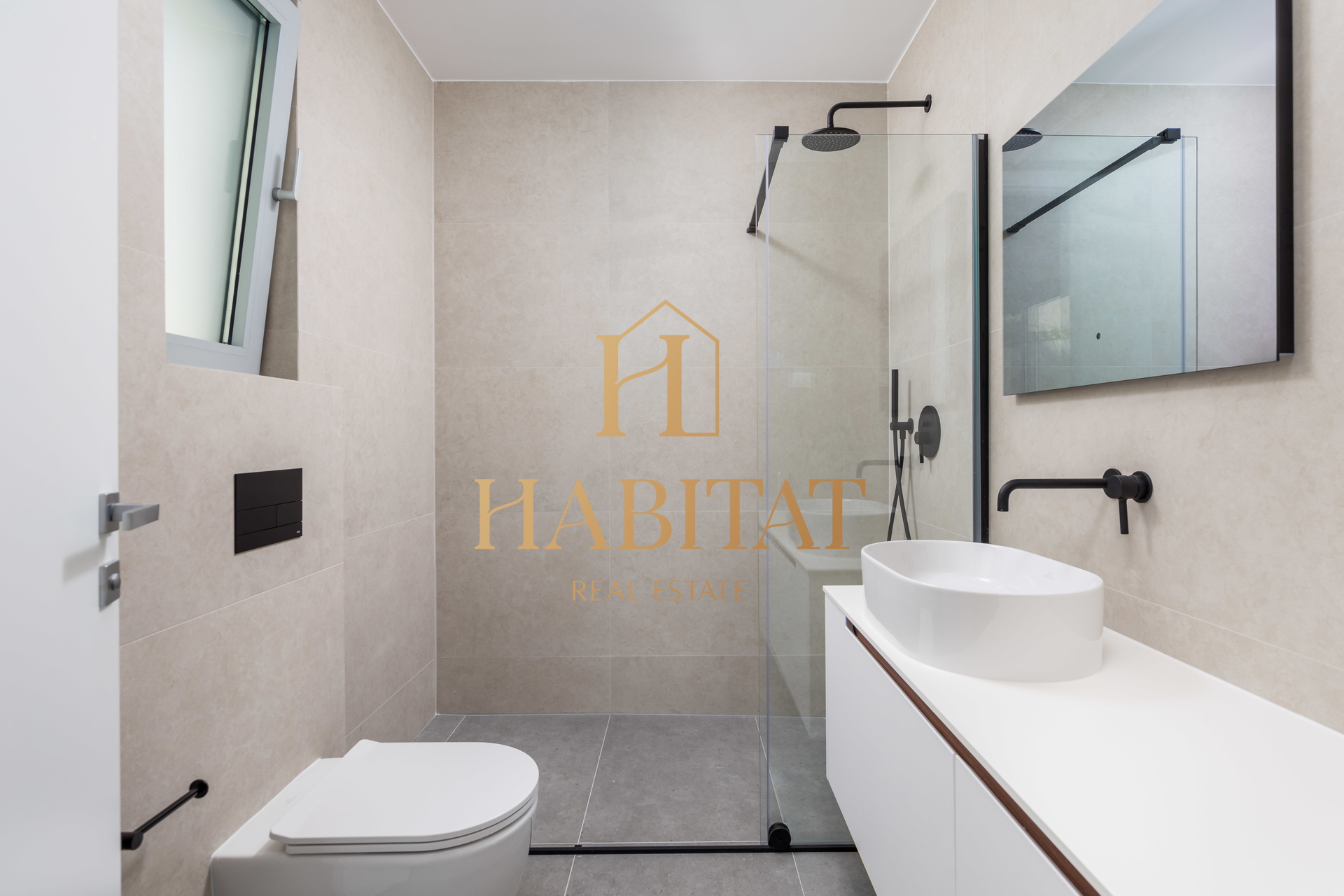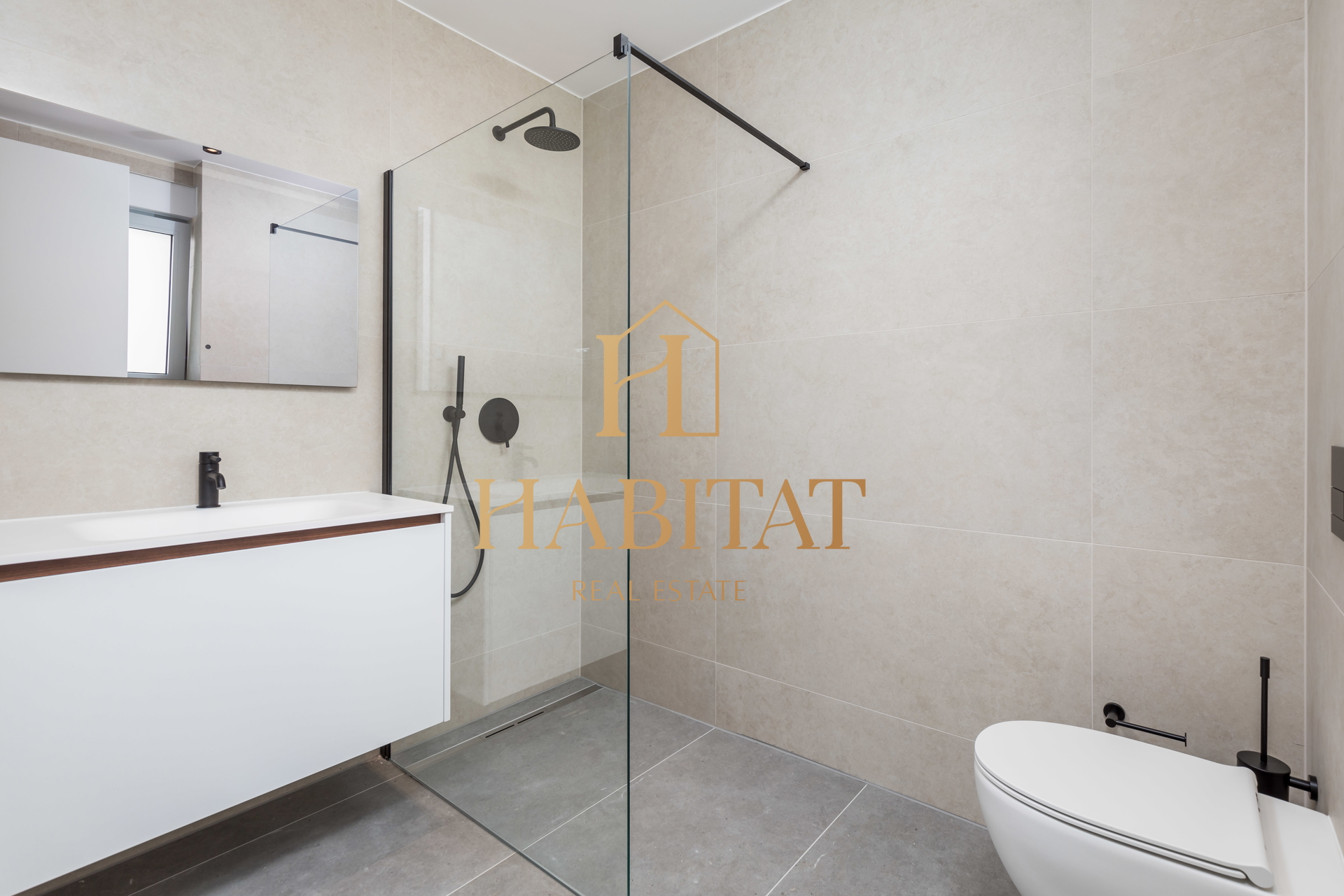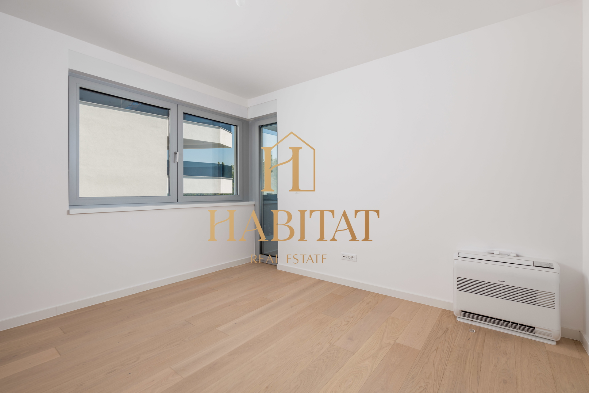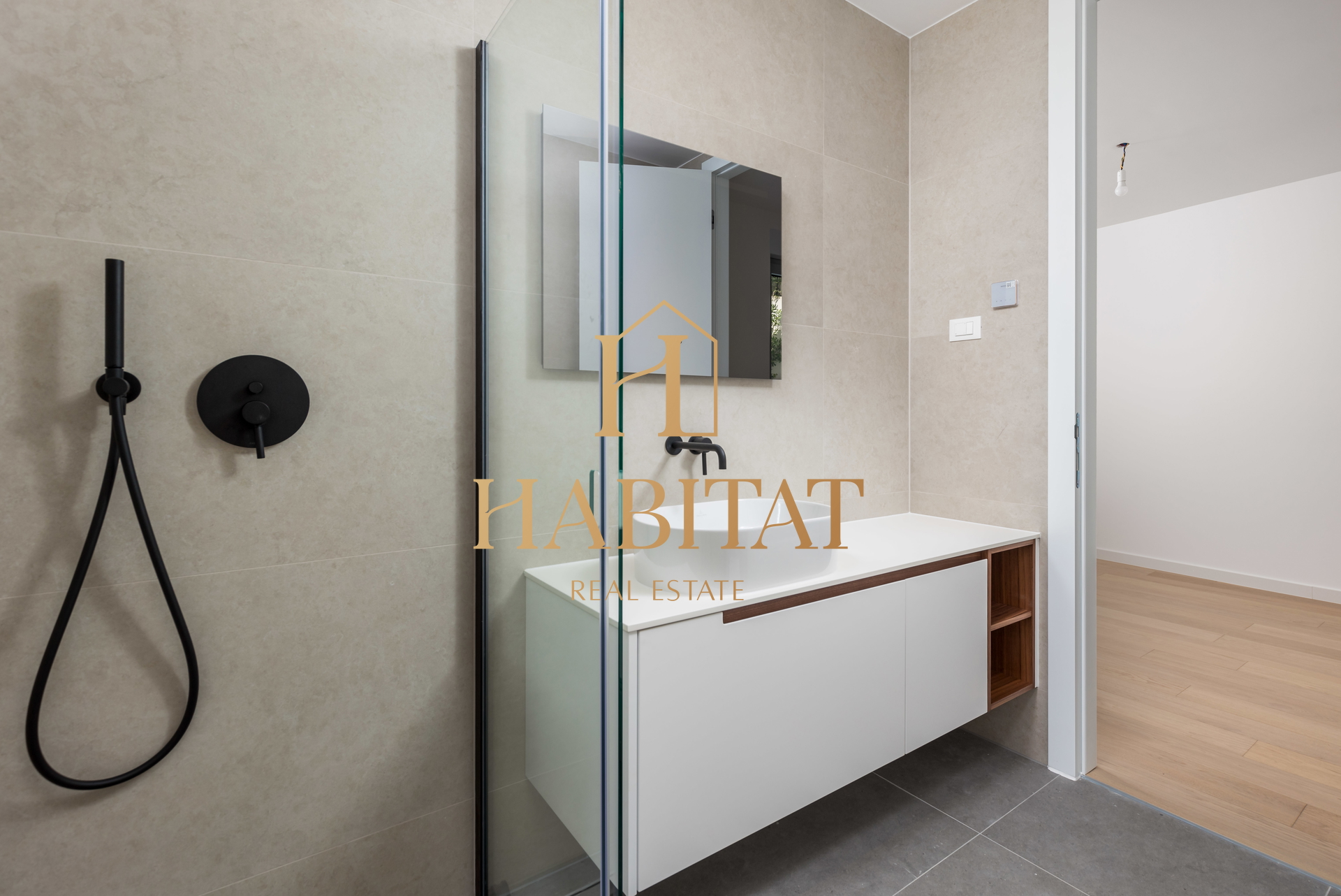 Prostrani prizemni stan s dvije spavaće sobe, dvije kupaone i WC-om. Unutarnjih 82,34 m2 povezano je s terasom od 29,78 m2. Stan dolazi s dva garažna parkirna mjesta.