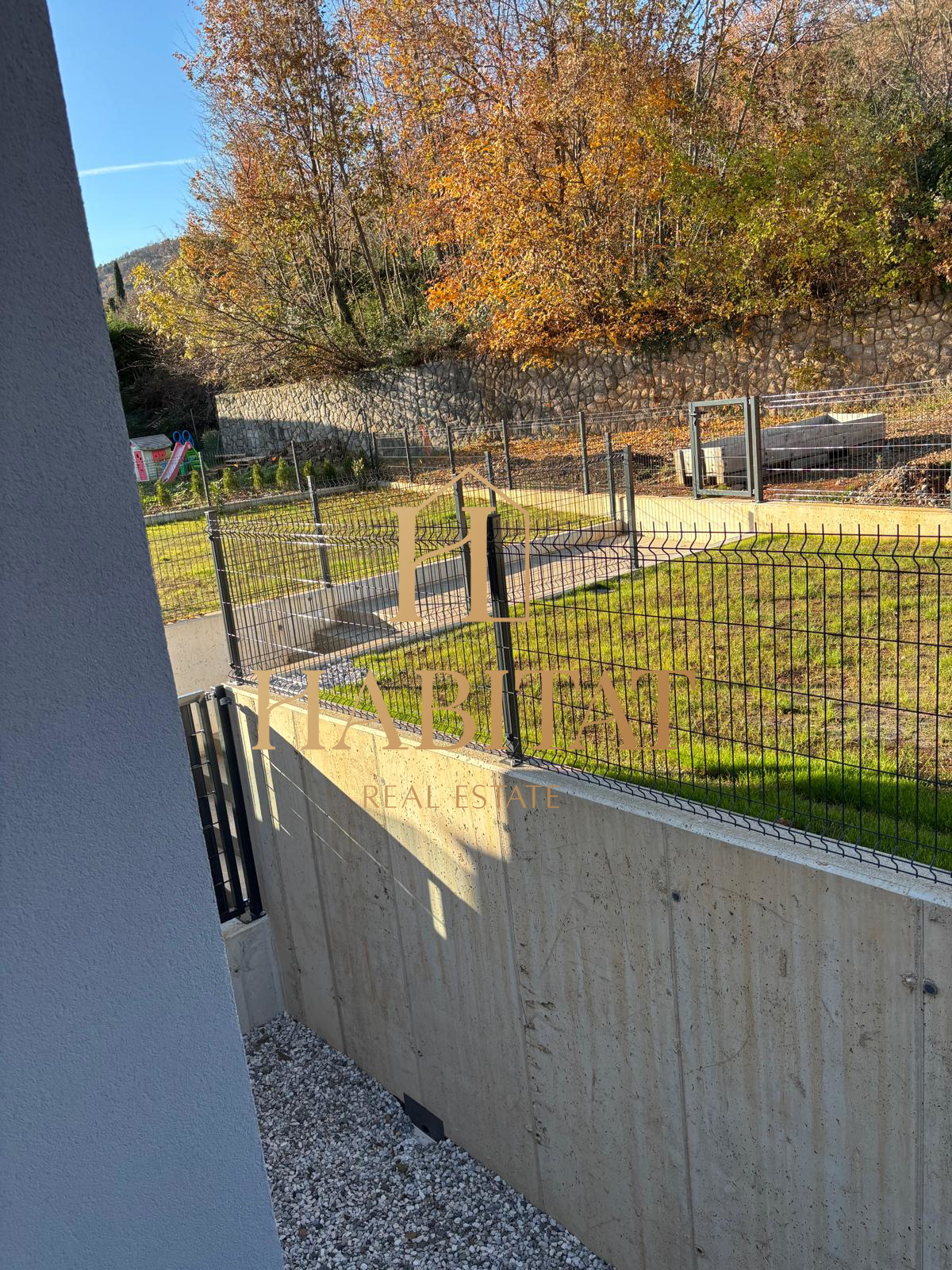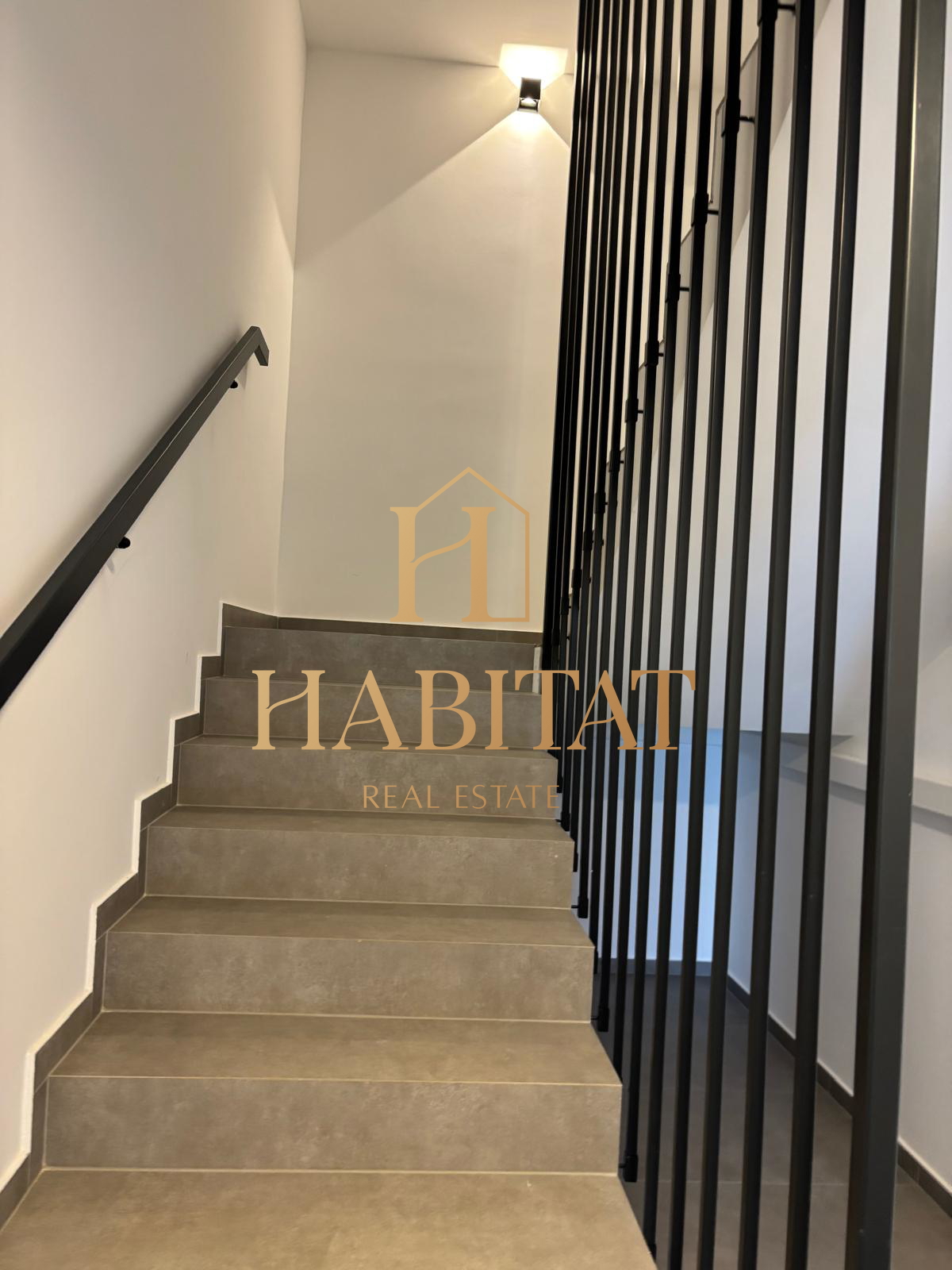 Stan se sastoji od dnevnog boravka, kuhinje, blagovaone, dvije spavaće sobe, dvije kupaone i wc-a. Natkrivena terasa je površine, 22 m2, vrtna terasa nešto manje od 60 m2, te još tri vrta od 27 m2, 6 m2 i 5 m2.