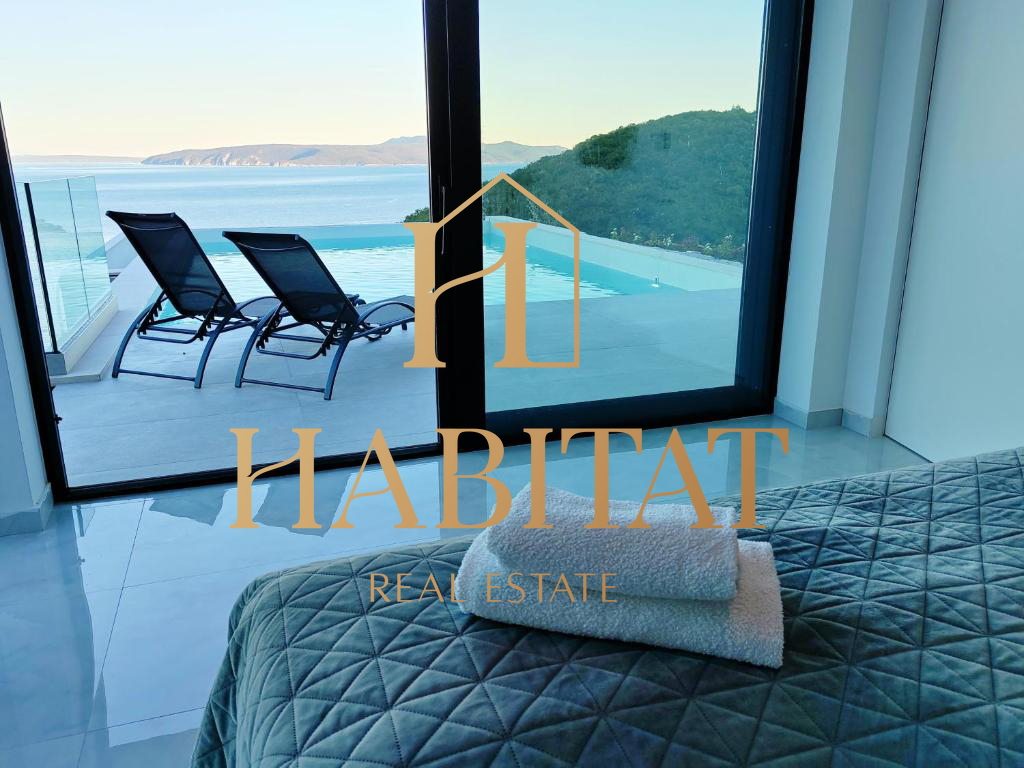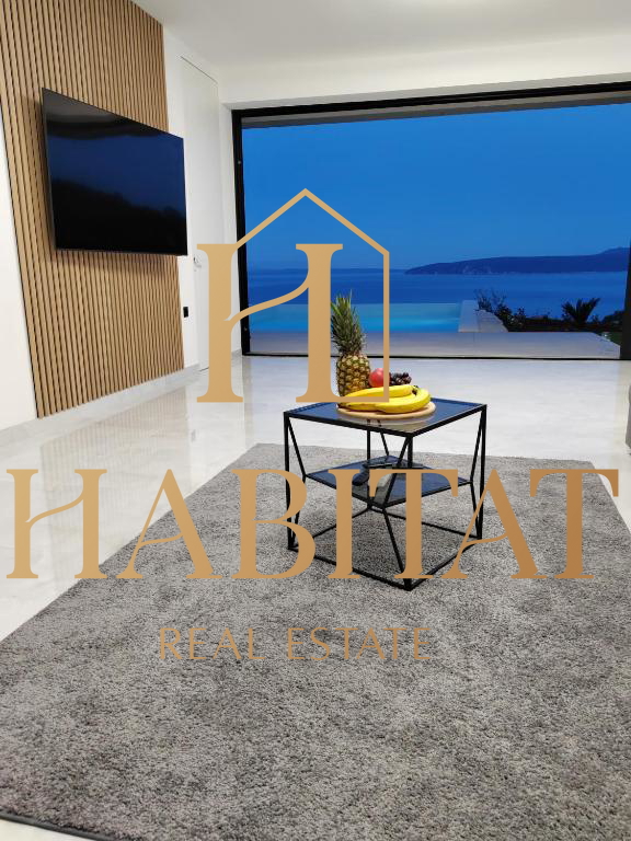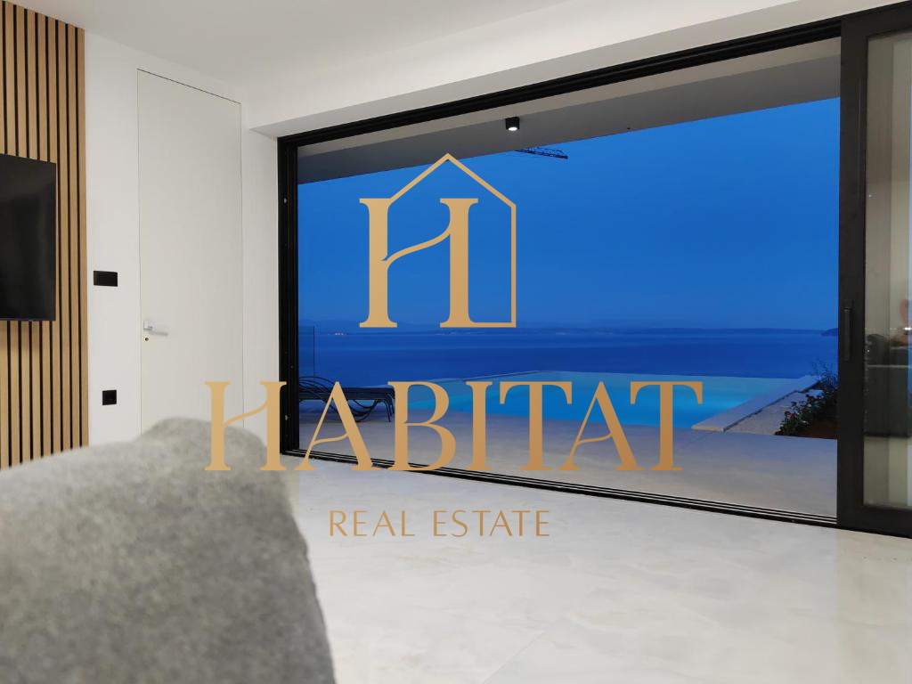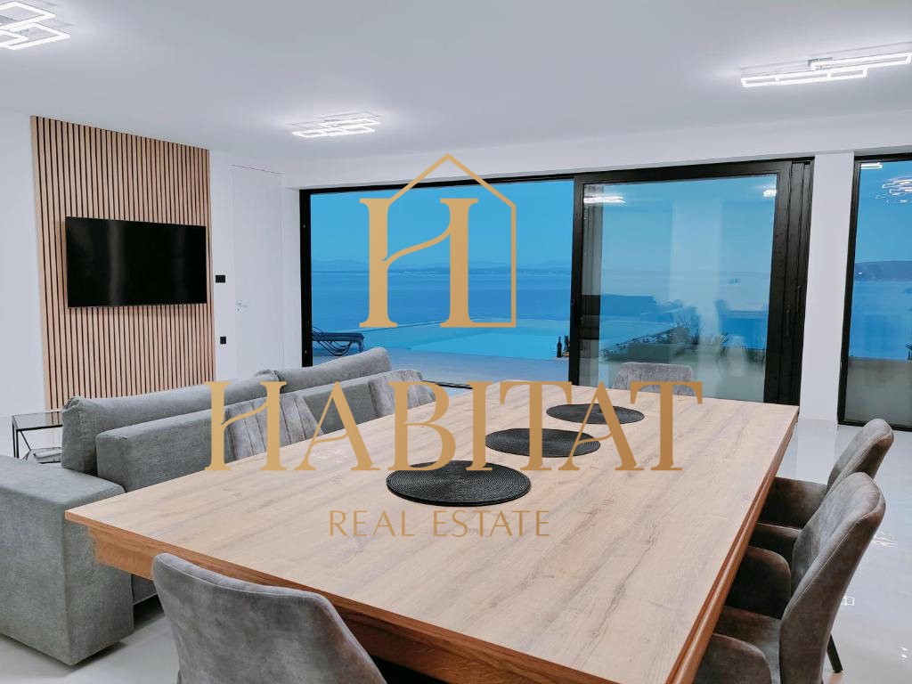 Na prodaju je moderno uređena prizemna vila s impresivnim panoramskim pogledom na more, smještena na iznimno mirnoj lokaciji, okružena prirodom i potpunim mirom.