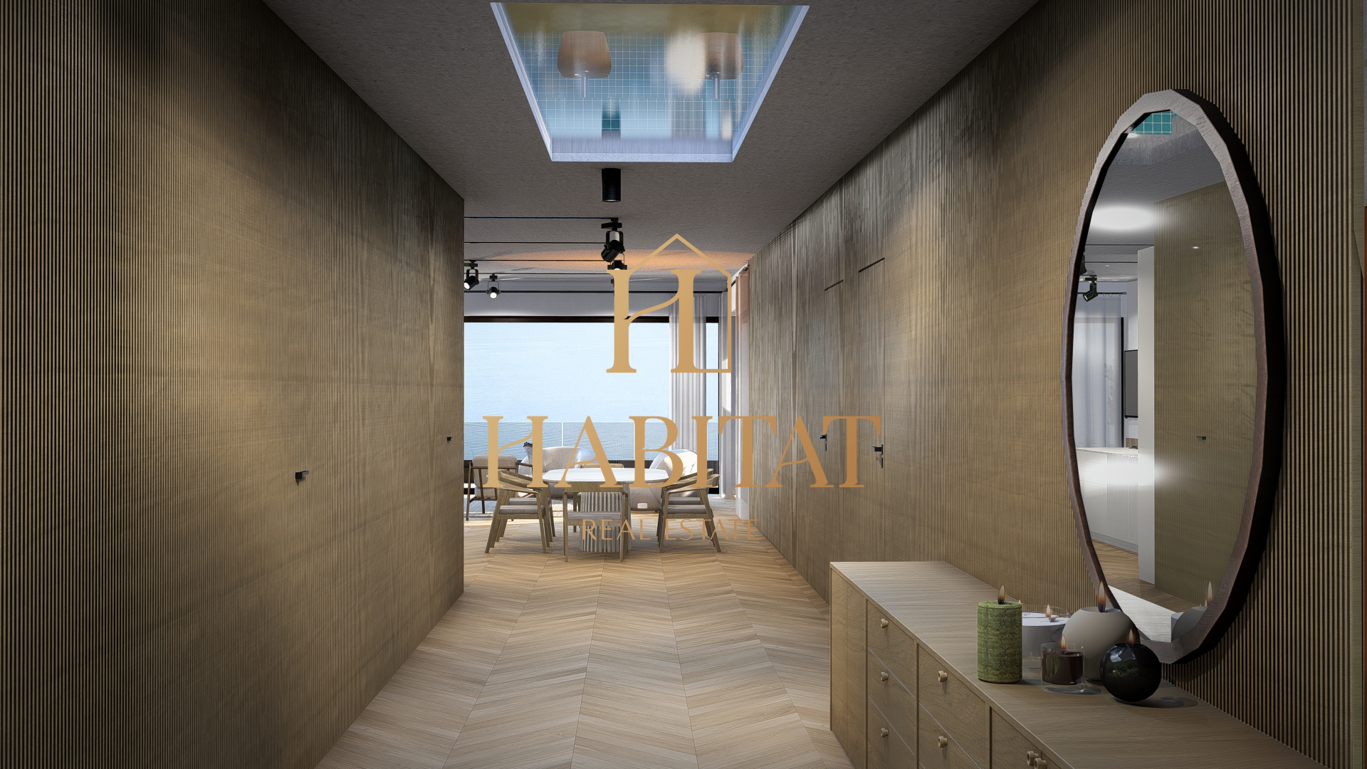 Ovaj penthouse projektiran je s naglaskom na prostranost, funkcionalnost i luksuz. Ulazni hodnik vodi prema velikoj ostavi te prema tri komforne spavaće sobe, svaka s vlastitom kupaonicom, osiguravajući maksimalnu privatnost za sve članove obitelji ili goste.