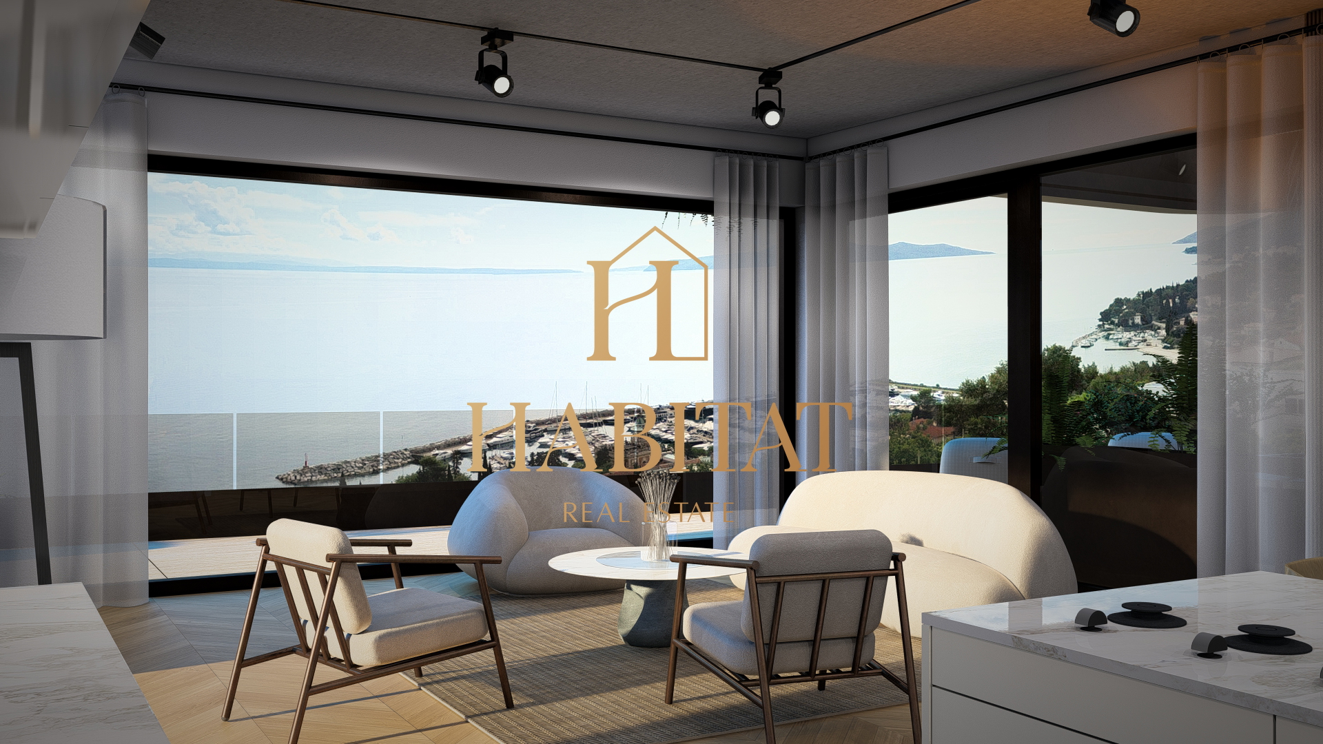 Projekt je koncipiran kao spoj suvremenog dizajna, funkcionalnosti i energetske učinkovitosti. Čiste linije, velike staklene stijene i otvoreni pogledi prema moru stvaraju dojam prozračnosti i povezanosti interijera s okolišem.
