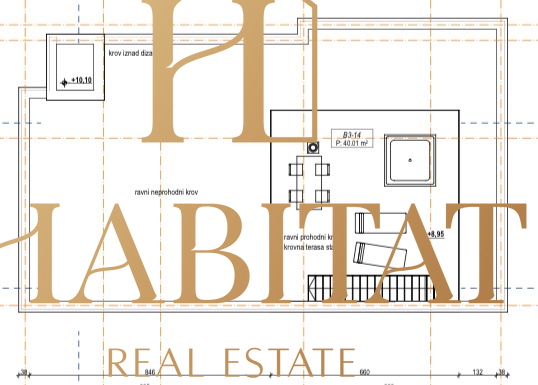 Ono što ovom stanu daje posebnu vrijednost je krovna terasa na koju se po želji može ugraditi manji bazen ii jacuzzi.